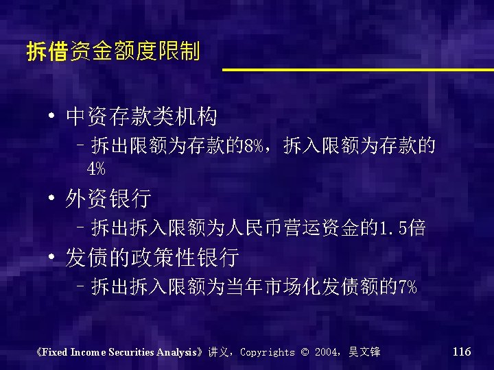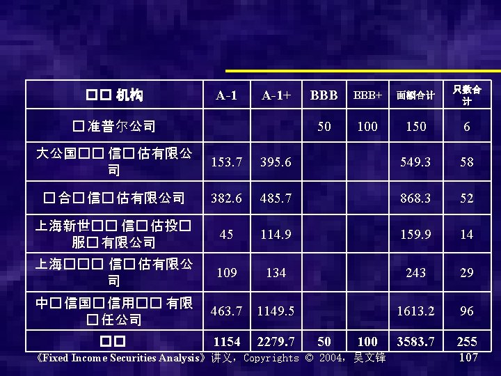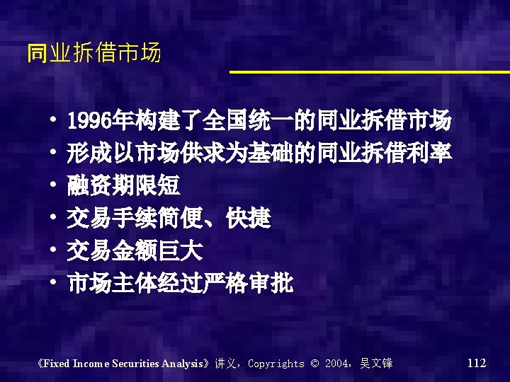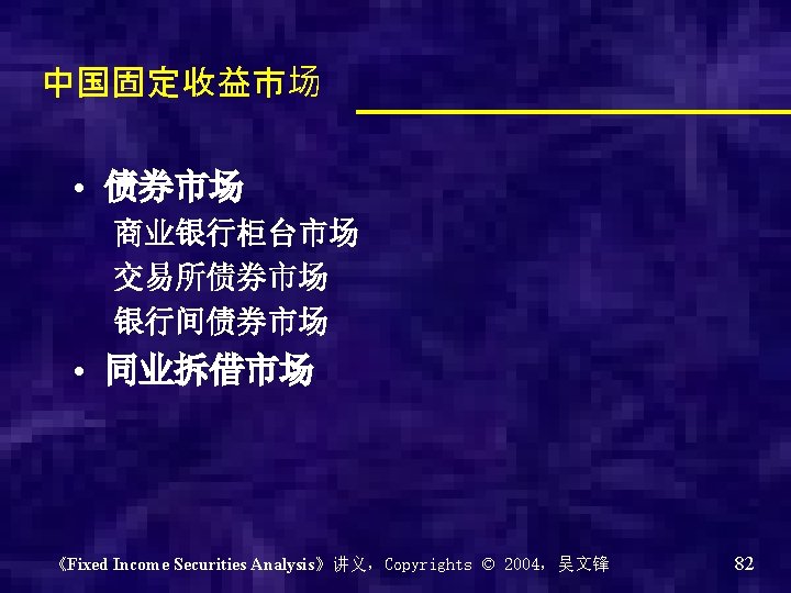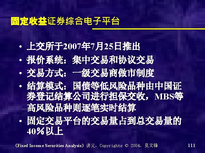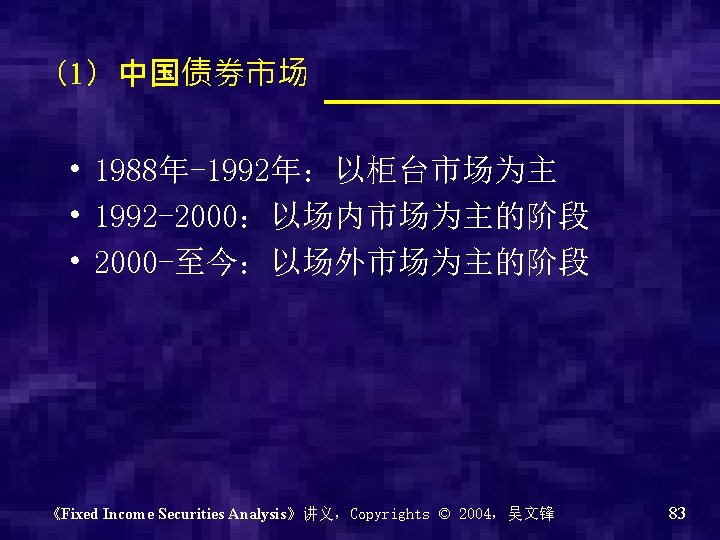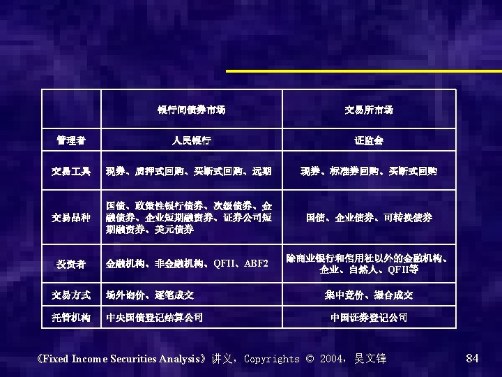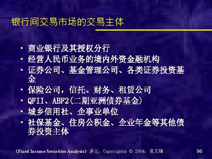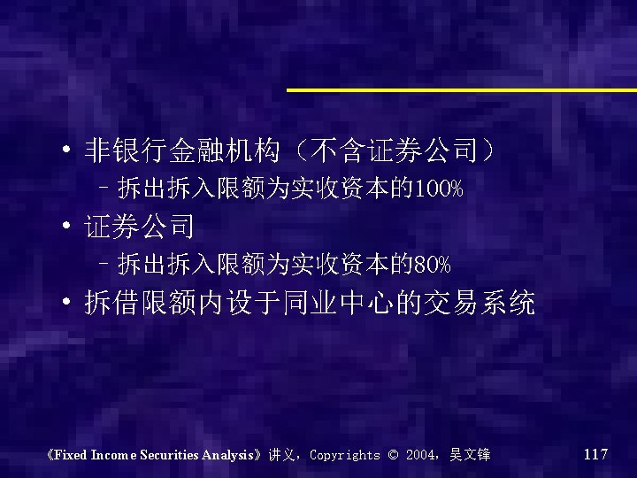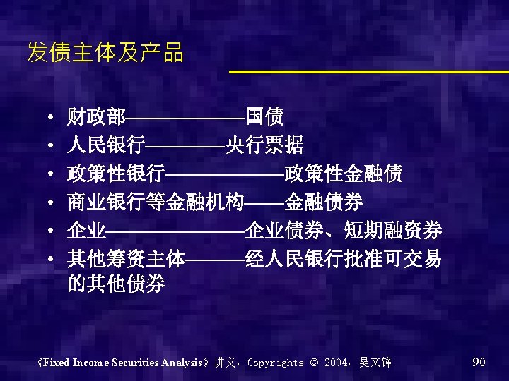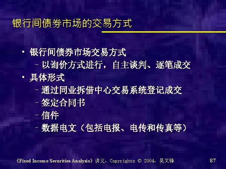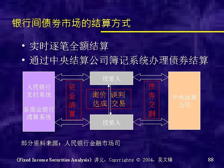 银行间债券市场的市场架构 《Fixed Income Securities Analysis》讲义,Copyrights © 2004,吴文锋 89