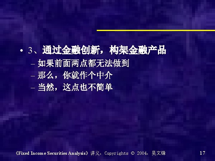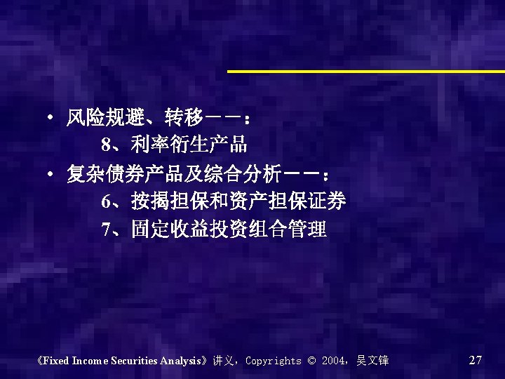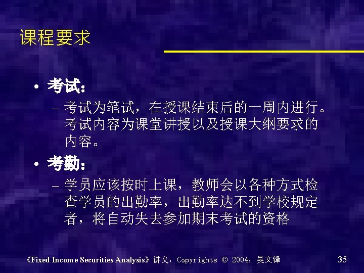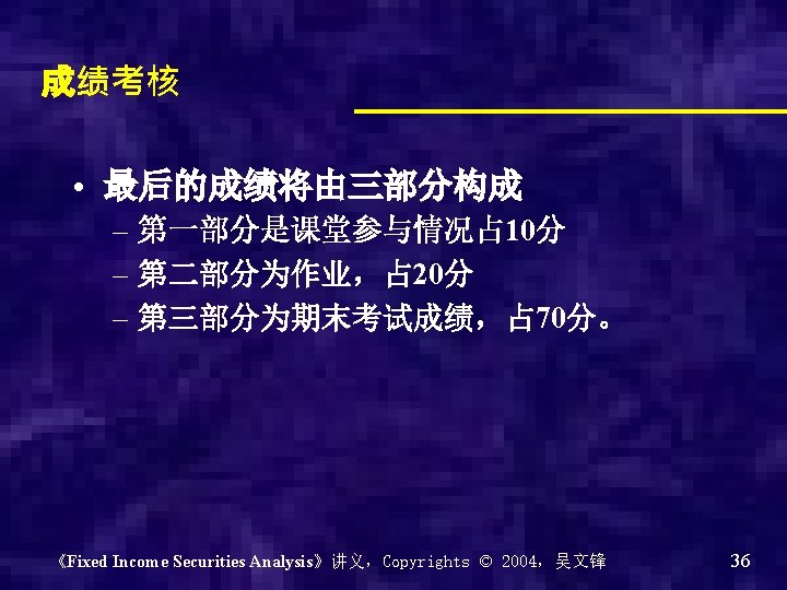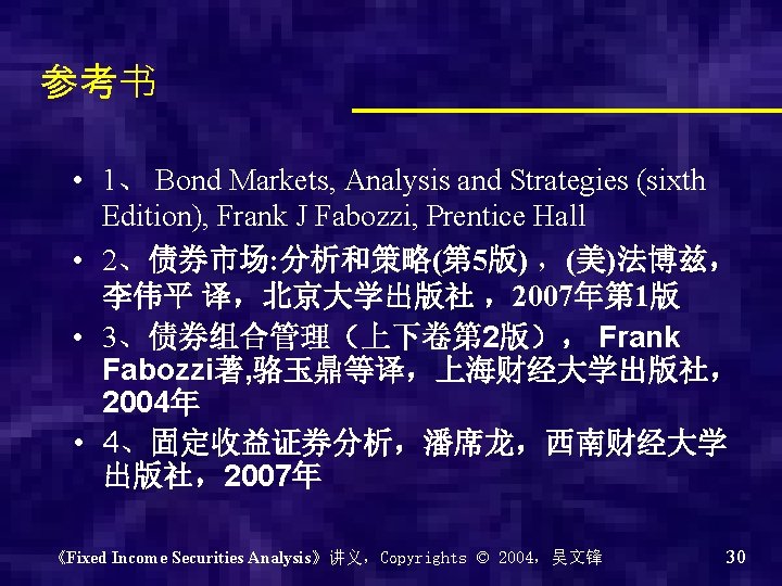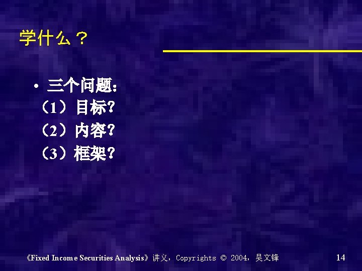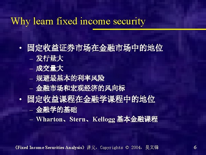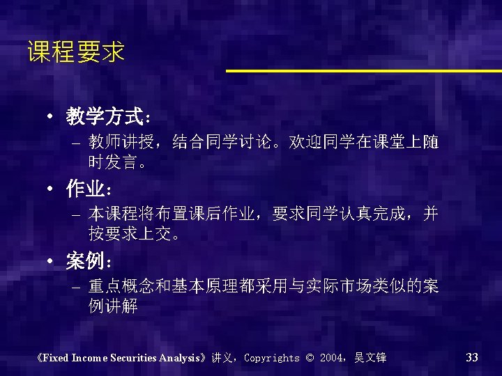 Chapter 0 - Introduction of the course Why? What? How? 《Fixed Income Securities Analysis》讲义,Copyrights © 2004,吴文锋 2