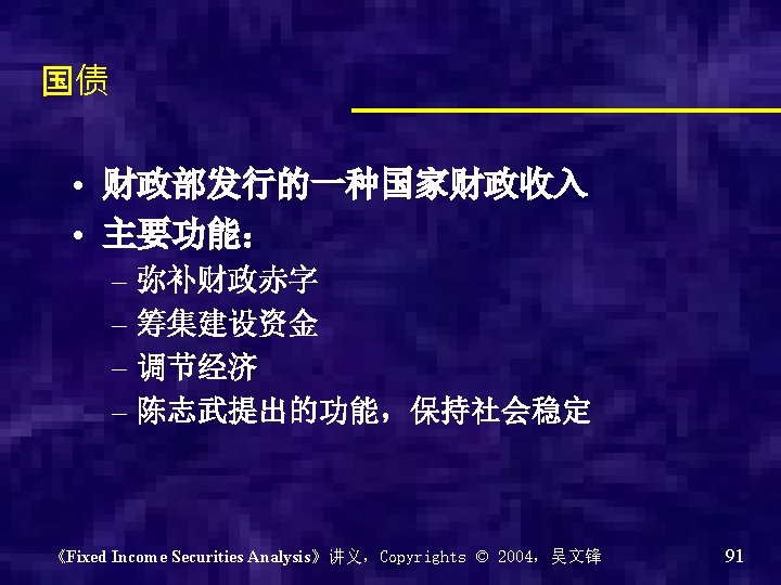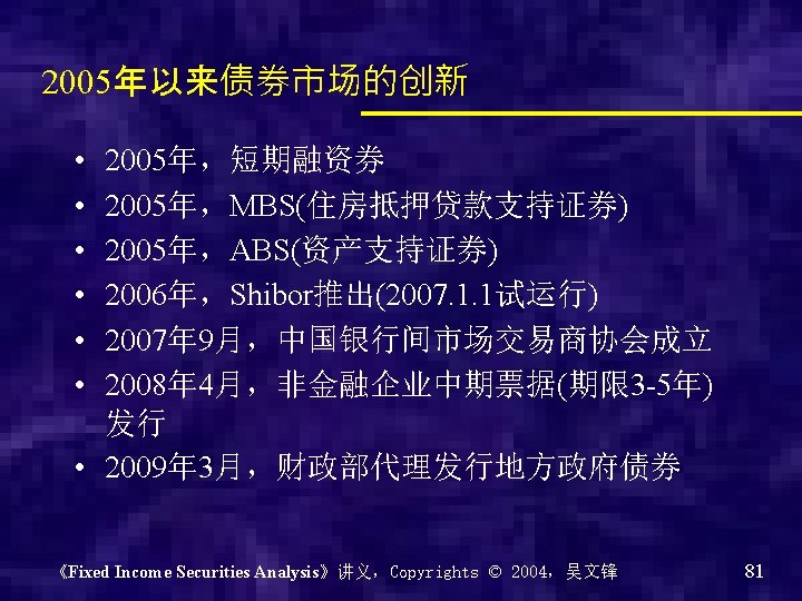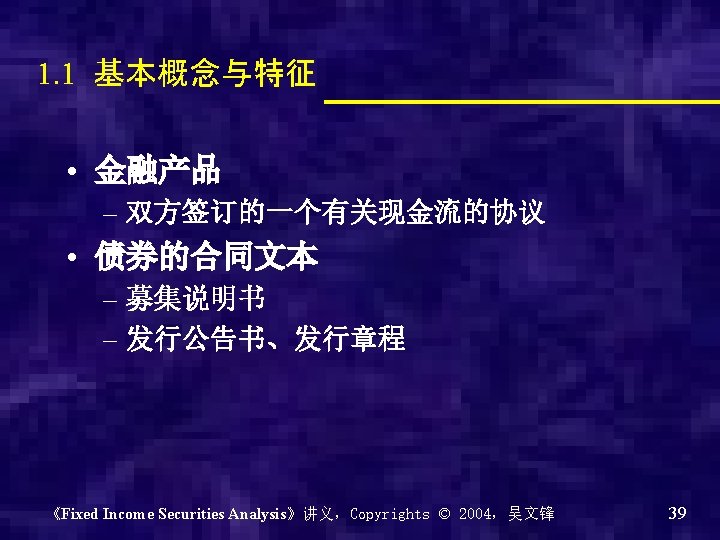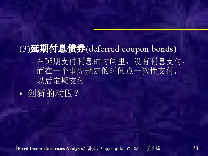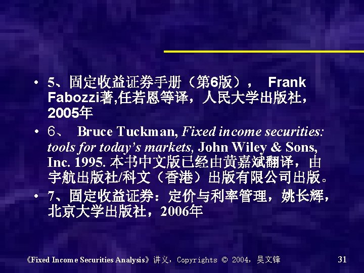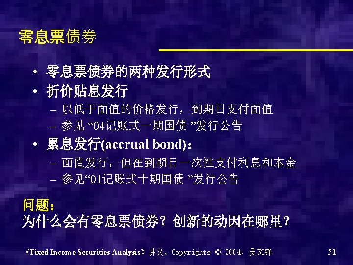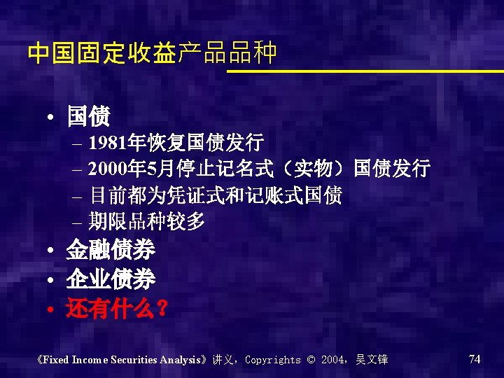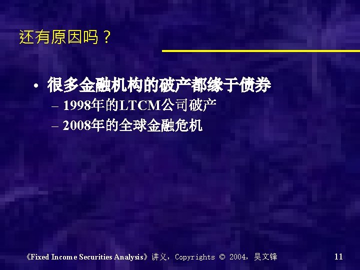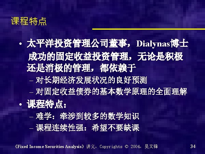 Chapter 0 - Introduction of the course Why? What? How? 《Fixed Income Securities Analysis》讲义,Copyrights © 2004,吴文锋 2