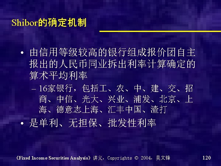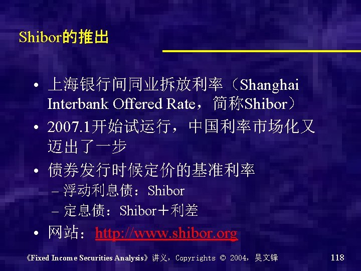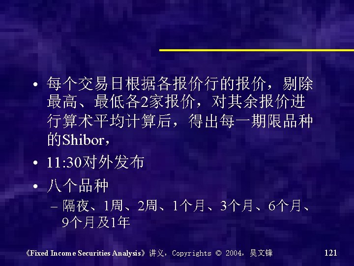 Shibor的运行情况 《Fixed Income Securities Analysis》讲义,Copyrights © 2004,吴文锋 122