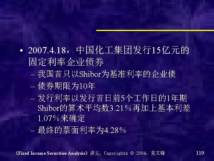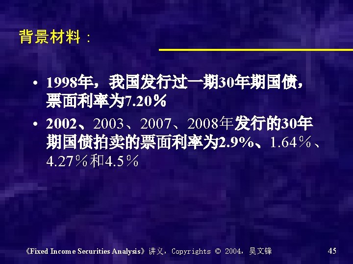 《Fixed Income Securities Analysis》讲义,Copyrights © 2004,吴文锋 22