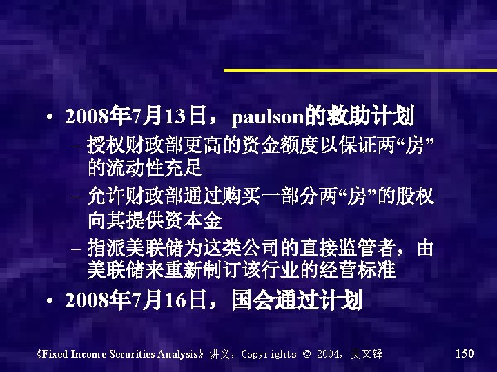 2008. 9一年来的FNMA股价 《Fixed Income Securities Analysis》讲义,Copyrights © 2004,吴文锋 148
