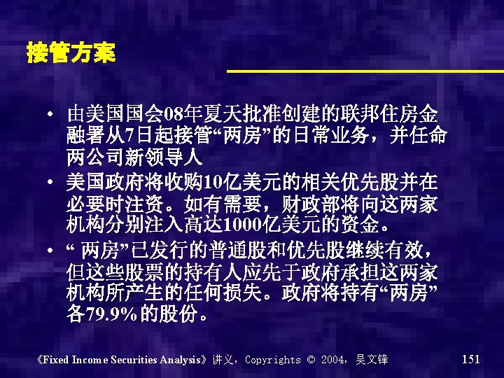 2009. 11的FNMA以来股价 《Fixed Income Securities Analysis》讲义,Copyrights © 2004,吴文锋 149