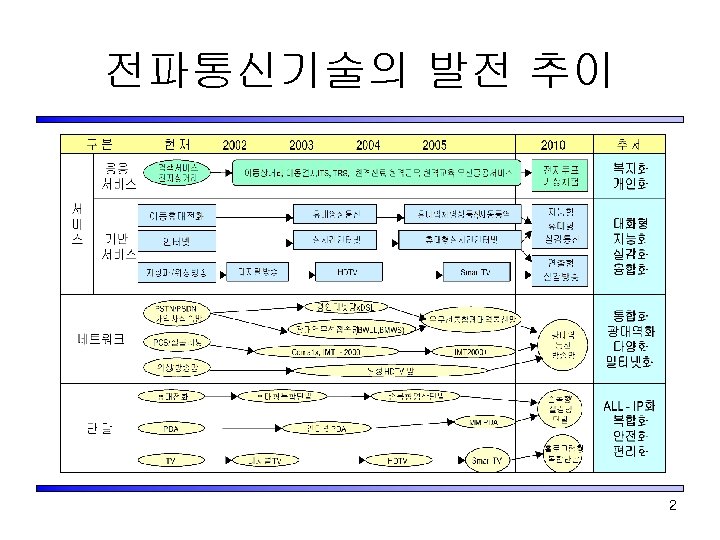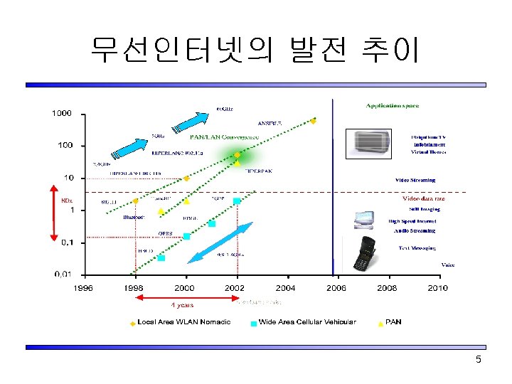 전파통신 기술의 영역의 보편화 Fixed Office In/Out door Satellite Aircraft Vehicle Out of Urban Vessel 3