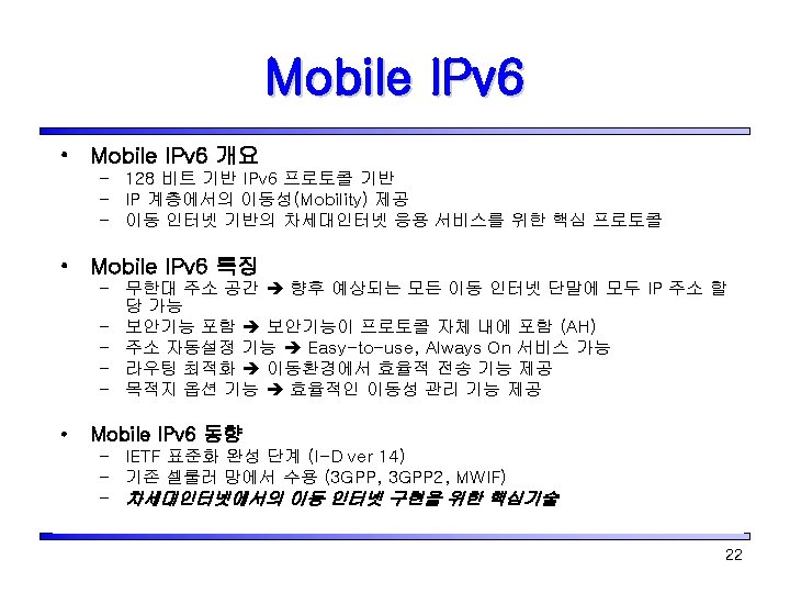Mobile IPv 4(Mo. IPv 4)와 Mobile IPv 6(Mo. IPv 6) 구조 23