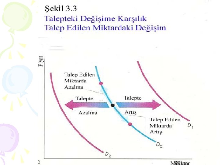 Talebin artmasını yani talep eğrisinin sağa kaymasına neden olan başlıca faktörler ü Gelirde meydana gelen artışlar ü İkame mallarının (biri diğeri yerine kullanılabilen mallar) fiyatlarında meydana gelen artışlar ü Tamamlayıcı malların fiyatlarında meydana gelen azalışlar ü Zevk ve tercihlerde meydana gelen olumlu gelişmeler ü Tüketici sayısının (Nüfusun) artışı ü Tüketicilerin ileride fiyat artışlarına ilişkin beklentileri ü Tüketicilerin ilerideki gelir artışlarına ilişkin beklentileri ü Reklamların tüketiciler üzerinde yaptığı olumlu etki.