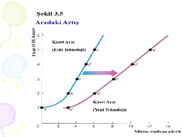 Arz Eğrisinin Hareketleri ü Arz eğrisi, fiyat dışındaki arzı etkileyen faktörlerden herhangi birisi değiştiğinde tümüyle sağa veya sola kayacaktır. ü Arz eğrisinin sağa kayması aynı fiyattan firmaların daha fazla mal sunmak istemeleri anlamına gelir. ü Arz eğrisinin sola kayması ise aynı fiyattan firmaların piyasaya daha az mal sunmak isteklerini yansıtır.