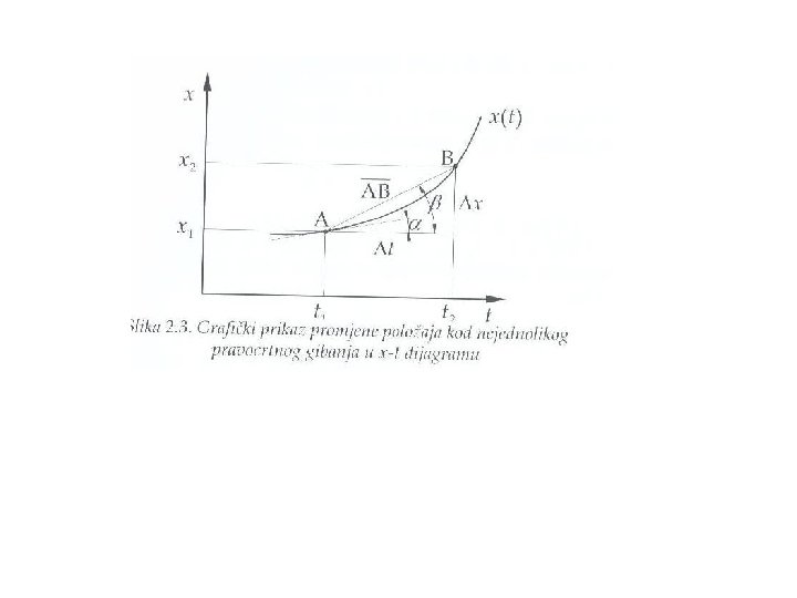 x Jednoliko, većom brzinom od B A D C miruje nejednolikom brzinom (ubrzano i usporeno) B Jednoliko, manjom brzinom od A t