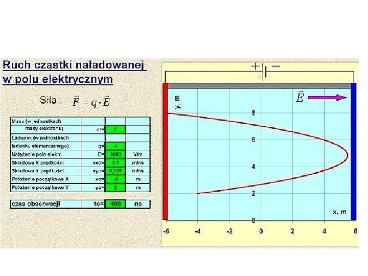 Ładunek w polu elektrycznym E = (0, 0, E) Warunki początkowe: r = v =