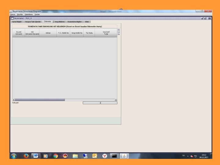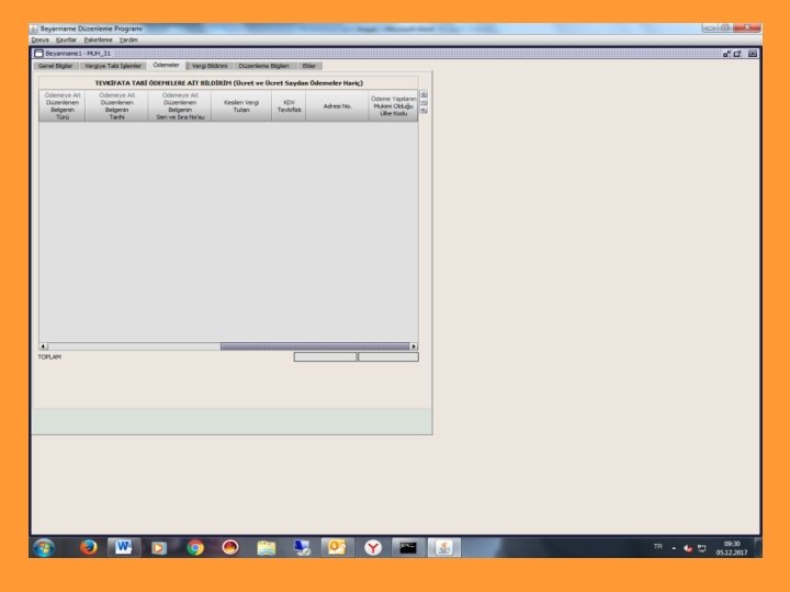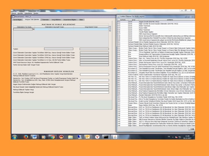 BEYANNEMELERİN DOLDURULMASINDA DİKKAT EDİLMESİ GEREKENLER Ø ÖDEMELER KULAKÇIĞI: TEVKİFATA TABİ ÖDEMELERE AİT BİLDİRİMLER (Ücret ve Ücret Sayılan Ödemeler Hariç) Ücret ve Ücret Sayılan Ödemelere ait bilgiler dışında kalanlar için yapılan tevkifata ait bilgiler ödeme türü kodu bazında bu kısımda açıklanacaktır Bu kulakçıkta aynı ödeme türü aşağıdaki şartlarda birden fazla yazılabilir. Şartlar : Ø T. C kimlik Numarası/ Vergi Kimlik Numarası; Ø Ödemeye Ait Belgenin Türü; Ø Ödemeye Ait Belgenin Tarihi; Ø Ödemeye Ait Belgenin Seri Sıra Numarası gibi yazılan bilgilerden herhangi bir tanesinin farklı olması durumunda aynı ödeme türü birden fazla yazılabilir.