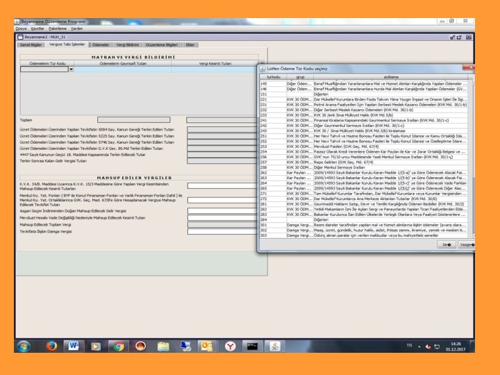 BEYANNEMELERİN DOLDURULMASINDA DİKKAT EDİLMESİ GEREKENLER VERGİYE TABİ İŞLEMLER KULAKÇIĞI Bu kulakçıkta tevkifat kesintileri ödeme türü kodu bazında ayrı yazılacaktır. Özellik arz eden durum: Her ödeme türü kodu tek olarak yazılacaktır. Beyanname doldurulurken ödemeye ilişkin kodlar doğru seçilerek beyanname doldurulmalıdır.
