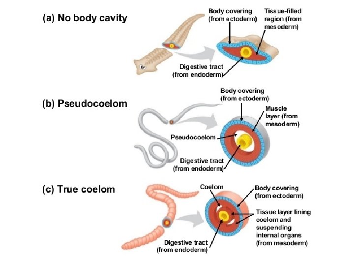 Characteristics of Platyhelminthes Body symmetery: bilateral Body organization: triploblastic (3 layers) – Ectoderm – Mesoderm (first!!) – Endoderm Body Cavity: acoelomate