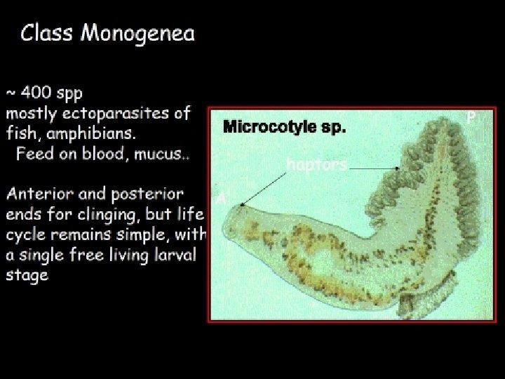 Additional information: Parasitic Ex) flukes and tapeworms • Lives in digestive tract & absorbs digested food from host so, NO digestive tract! • This leaves more room for reproduction – capable of producing 1, 000 s of eggs.