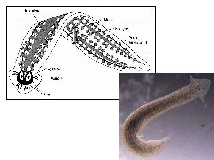 Additional information: Free living ex) Planaria – freshwater Stores food as fat Brain coordinates movement & capable of learning its way through a maze Able to respond to light & chemicals