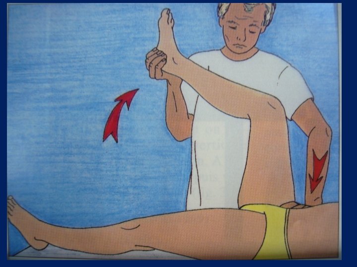 TRAITEMENT • CELUI DE LA CAUSE : arthroscopie • REEDUCATION : posture • ARTHROLYSE POSTERIEURE (arthrotomie) • PREVENTIF : +++ auto-rééducation verrouillage du genou ATTENTION AUX CANNES ANGLAISES