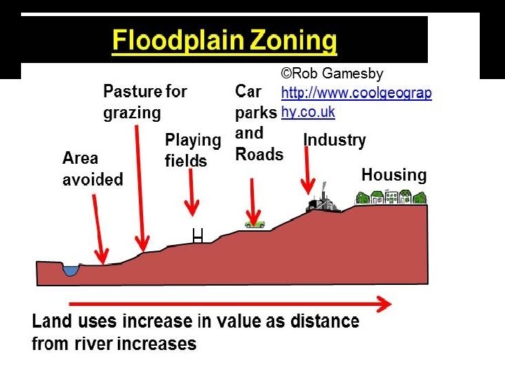 Flood Plain Zoning � It is natural for a river to overflow its banks in the event of heavy rainfall in its upper catchments and spill into the flood plains(low lying area near the river), which are basically its domain. Extensive and often unplanned use of flood plains by man disregarding the basic fact that it is part and parcel of the river leads to damage. � The basic concept of flood plain zoning is to regulate land use in the flood plains in order to restrict the damage due to floods, while deriving maximum benefits from the same.