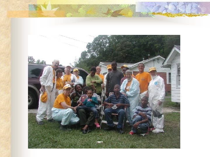 Getting started • Be at the correct address • Explain flood recovery to owner • Explain hazards of mold from water and mud between walls • Have the owner sign a work order describing the work to be done • Be sensitive to the homeowner’s loss • Be sensitive while working, the damaged and destroyed property is their life and home • Be a source of hope