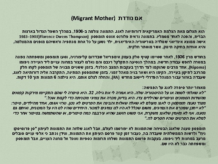 Florence Owens Thompson (Migrant Mother) " "אם נודדת Dorothea Lange's photo
