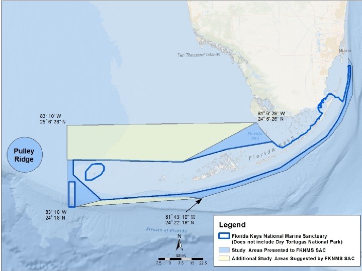 Florida Keys National Marine Sanctuary 1990 - Congress passed Florida Keys National Marine Sanctuary Protection Act 1997 - Management Plan, Zoning Scheme, and Regulations Implemented 2001 - Tortugas Ecological Reserve added Co-Managed with State of Florida (DEP/FWC)