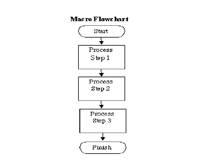 Macro Flowcharts • High level perspective • Steps in a process connected by a flow line • Identifies problems in the process