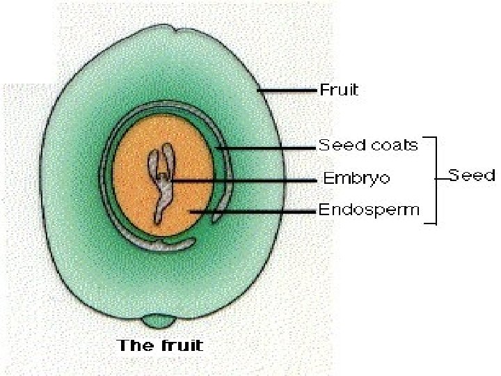 Seed and fruit formation n n n Seed is the final product of sexual reproduction. It is often called ripened ovule. Seeds develop inside stored food for later development of embryo is present either in cotylendons or endosperm. Where food is present in cotylendons, the latter are thick. Such seeds are called EXALBUMINOUS or NON ENDOSPERMIC. Eg. Pea, Gram, Bean, Groundnut. In exalbuminous seeds, the endosperm is consumed during growth of the embryo and transfer of food to cotylendons. In ALBUMINOUS or ENDOSPERMIC seeds, the whole of endosperm is not consumed during development of embryo. Sufficient food is also kept stored in it for future development of embryo. Eg. Wheat, Maize, Barley, Castor, Onion, Sunflower etc. Remants of nucellus persist in some seeds. The residual, persistent nucellus is called PERISPERM. Eg. Black Pepper.