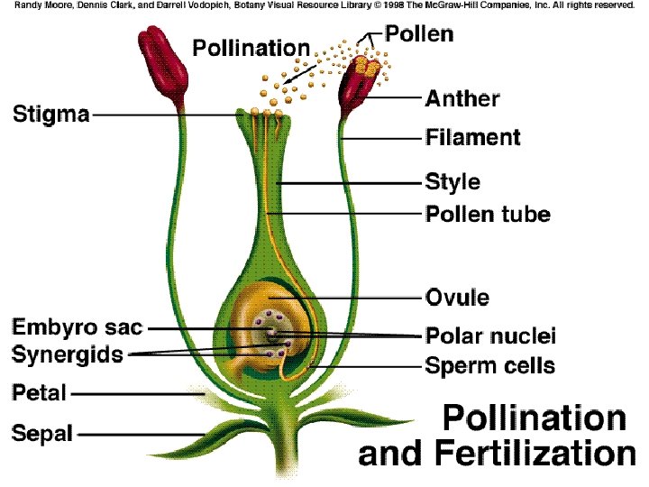 Wind Pollination • Usually have dull colors, relatively odorless, do not produce nectar, petals small or absent, sexes often separated • Wind pollinated flowers are most common in temperate areas where large stands of single species of plant occur • With trees, wind pollination occurs in spring before leaves have emerged - usually have well exposed stamens to shed pollen to wind and stigma also exposed - often with feathery outgrowths to catch pollen • Often the plants have various mechanisms to promote out-crossing - separate sexes - dioecious - willows, poplars • unisexual flowers on same tree - monoecious - oaks, birches • Self-incompatible - grasses • Flowers are typically small, have single ovule per flower - however have many flowers borne in inflorescences and multiple inflorescences