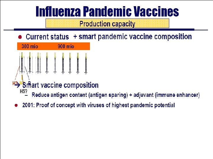 Vaccine Production Capacities • 65 -70% of global vaccine production located in Europe (5 companies) – 50% of that production is exported outside of Europe