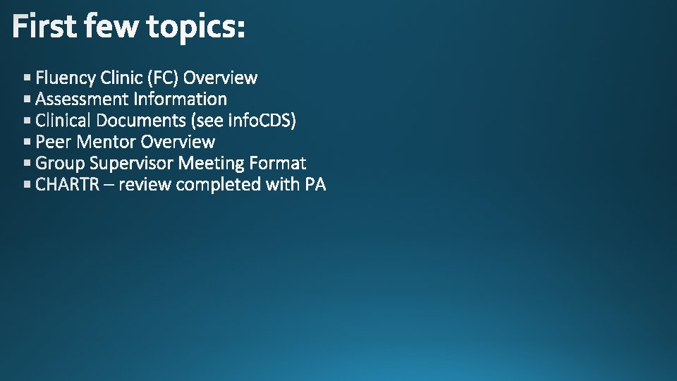 Clinic Paperwork • Templates (see info. CDS) • Lesson Plans • SOAPs • Dx reports • ITP • Test protocols (in HEDC) • Client file • Bring to first 3 supervisor meetings • Check for updated Chart Review Checklist • Collect missing, required forms