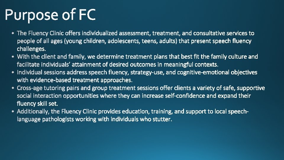 Stuttering Modification Integrated Fluency Shaping Targeted Speech Behaviors modify moments of stuttering reduce tension, struggle smooth out stuttering form reduce rapidity relaxed, easy, open stuttering Van Riper strategies ~ cancellations ~ pull-outs ~ preparatory sets progressive hierarchy (Van Riper) ~ language ~ emotional ~ cognitive ~ speech ~ social modify moments of stuttering short to long hierarch reduce tension, struggle ~ single words smooth out stuttering form ~ simple phrases reduce rapidity ~ length is systematically increased as relaxed, easy, open stuttering fluency criteria is achieved Van Riper strategies speech pattern altered artificially ~ cancellations ~ Delayed Auditory Feedback ~ pull-outs fluency is established then transferred to ~ preparatory sets increasing length utterances progressive hierarchy (Van Riper) ~ language ~ emotional ~ cognitive ~ speech ~ social speech pattern altered for instructional point of reference ~ Delayed Auditory Feedback Clinical Setting Interact casually, comfortably teach, counsel play for CWS more structure when trying DAF or programmed instruction Data Collection online video, audio record standardized, nonstandardized Highly structured ~ operant conditioning ~ programmed instruction Specific ~ instructions, materials ~ reactions from clinician ~ responses sought from PWS stringent collection each session standardized, nonstandardized