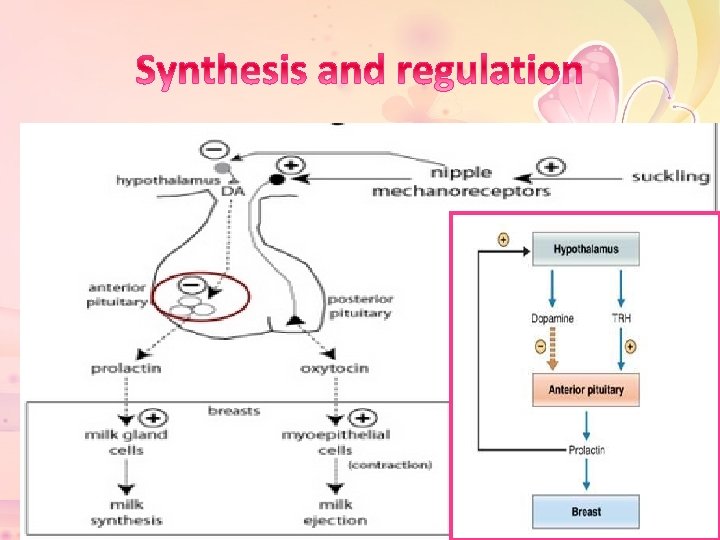 • Hypersecretion of prolactin can be caused by pituitary tumors, hypothalamic diseases, hypothyroid, renal failure, acute exercise and several medications. Hyperprolactinemia inhibits hypogonadism in men and women with accompanying low FSH and LH levels. • Human Prolactine is simillar in structure to human growth hormone, and both are good lactogenes.