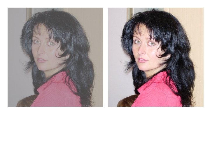 flusserutia cas cz Prof Ing Jan Flusser Dr Slides: 26 Download presentation flusser@utia. cas. cz Prof. Ing. Jan Flusser, Dr. Sc. Digitální zpracování obrazu Lecture 3 Digitální zpracování obrazu • Digitalizace (vzorkování, kvantování) • Předzpracování (změny kontrastu a jasu, potlačení šumu, zaostření, … ) • Analýza obrazu (detekce a rozpoznávání objektů) • Kódování (komprese) Předzpracování obrazu • Image enhancement • Image restoration Image enhancement • Změny kontrastu a jasu • Potlačení šumu • Detekce a zvýraznění hran Změny kontrastu a jasu • Histogram • Lineární změny kontrastu a jasu • Nelineární změny kontrastu a jasu, ekvalizace • Lokální operace Histogram jas kontrast Změny kontrastu a jasu Categories of illumination changes • Point-wise transforms • Global x local • Linear x nonlinear Illumination changes Změny kontrastu a jasu – lineární Negativ Mamogram Nelineární transformace šedi ampl log(ampl + 1) Gama korekce Output = c (input)gama Gama korekce Output = (input)gama = 3, 4, 5 Gama korekce Output = (input)gama = 0. 6, 0. 4, 0. 3 Gama korekce Gama korekce Ekvalizace histogramu řešení -> kumulativní histogram Ekvalizace histogramu Ekvalizace histogramu Ekvalizace histogramu Díky, pro dnešek končíme s úpravami kontrastu! Nějaké otázky ?