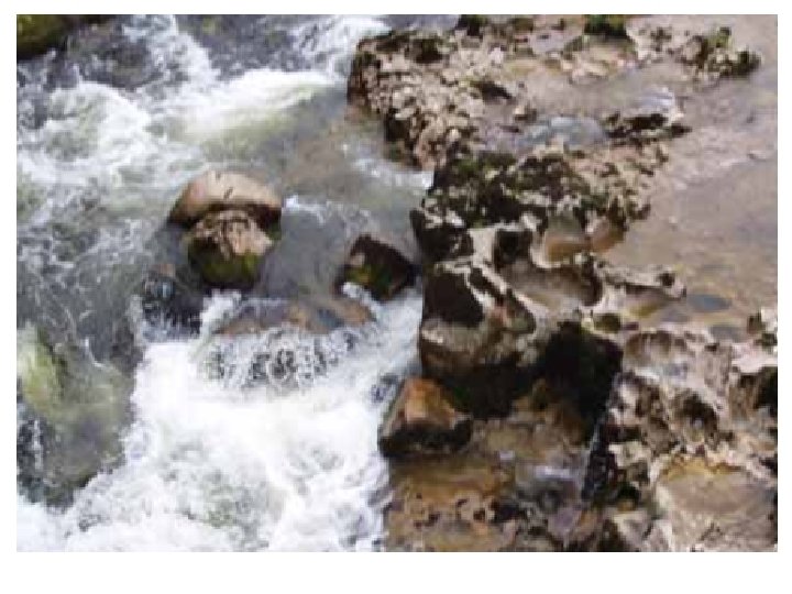 Upper course § Vertical erosion is the dominant process § River channel narrow and shallow, often lined with large angular boulders § Quite steep gradient § Velocity quite low because so much energy used in overcoming friction with the rocky bed and banks of the river