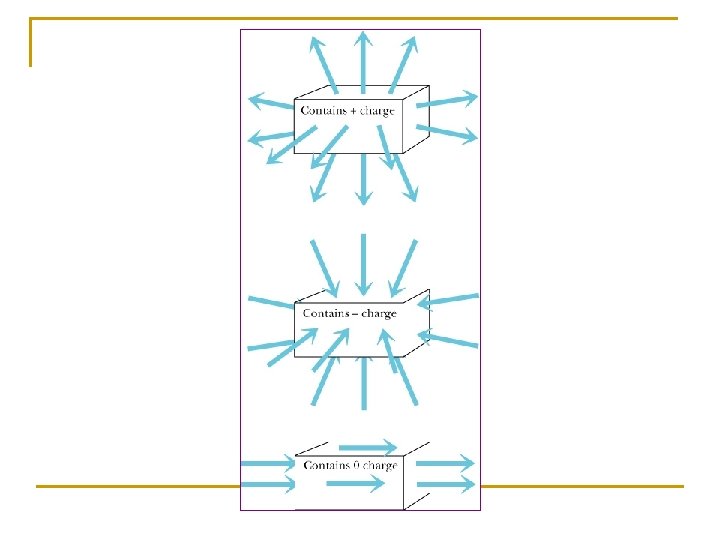 NEW RULES (Bill Maher) n n n Imagine a region of space where the ELECTRIC FIELD LINES HAVE BEEN DRAWN. The electric field at a point in this region is TANGENT to the Electric Field lines that have been drawn. If you construct a small rectangle normal to the field lines, the Electric Field is proportional to the number of field lines that cross the small area. q q The DENSITY of the lines. We won’t use this much