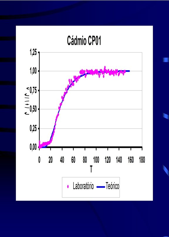 COMPARAÇÃO DOS RESULTADOS Metal Mn Zn Cd Rd Dh MT DT D 10 CP 01 19, 50 19, 64 19, 50 9, 79 E-3 1, 08 E-2 1, 04 E-2 CP 02 18, 00 17, 81 18, 11 6, 29 E-3 7, 05 E-3 1, 11 E-2 CP 04 18, 50 18, 90 18, 85 7, 76 E-3 7, 37 E-3 7, 18 E-3 CP 01 26, 50 26, 97 27, 01 6, 96 E-3 6, 77 E-3 7, 03 E-3 CP 02 27, 50 28, 54 28, 55 4, 48 E-3 1, 01 E-2 1, 03 E-2 CP 04 26, 00 26, 19 26, 16 3, 93 E-3 4, 07 E-3 4, 15 E-3 CP 01 36, 00 37, 80 37, 69 1, 64 E-2 1, 79 E-2 1, 75 E-2 CP 02 38, 50 39, 74 39, 58 1, 67 E-2 1, 84 E-2 1, 79 E-2 CP 04 37, 50 39, 85 39, 72 1, 28 E-2 1, 70 E-2 1, 64 E-2 MT – Método Tradicional; DT – Método da Massa Acumulada usando todos os dados experimentais; D 10 – Método da Massa Acumulada usando 10 dados experimentais igualmente espaçados.