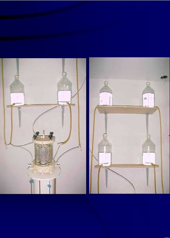 a) Ensaio em coluna de lixiviação A metodologia seguida neste ensaio é semelhante a do ensaio de permeabilidade, diferindo no que se refere à necessidade de medir as concentrações químicas dos efluentes. EQUIPAMENTO