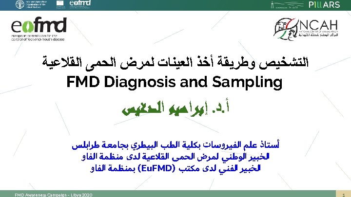 FMD History in Libya – ﺍﻟﻘﻼﻋﻴﺔ ﻓﻲ ﻟﻴﺒﻴﺎ ﺍﻟﺘﺎﺭﻳﺦ ﺍﻟﻤﺮﺿﻲ ﻟﻤﺮﺽ ﺍﻟﺤﻤﻰ Year - ﺍﻟﺴﻨﺔ Serotype - ﺍﻟﻨﻮﻉ ﺍﻟﻤﺼﻠﻲ 2019 ،2013 -2010 ،1994 ،1989 -1988 ،1983 -1981 ،1972 ،1968 -1967 ،1962 ،1959 O 2009 ،1979 A - C - Asia-1 - SAT 1 2012 ،2003 SAT 2 - SAT 3 FMD Awareness Campaign – Libya 2020