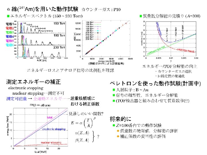 Recent development and Future plans ○ Measurement of short life decay ( < 5μsec ) → measure the pulse shape of pre-amp signal using Flash ADC ○ αーγ measurement → Si + Cd. Te → Si + Ge ○ Large area focal plane detectors for GARIS-II → DSSD array → large area To. F detector using large area MCP ○ Improvement for mass measurement → Ion chamber