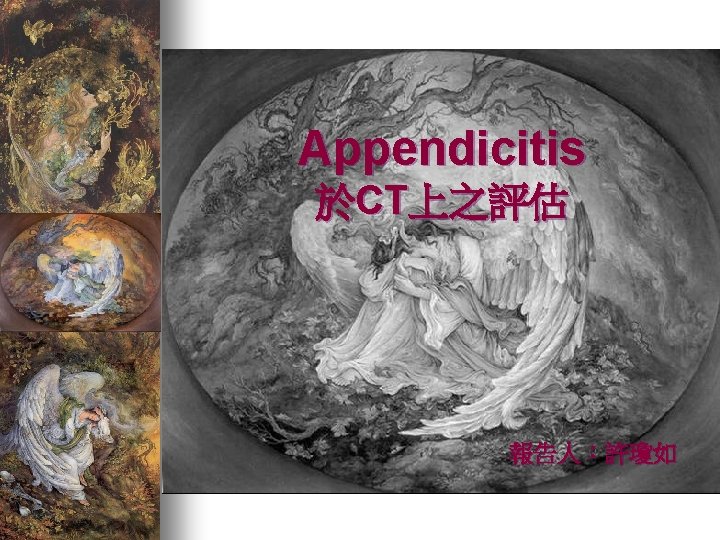 case 2: acute suppurative appendicitis(rupture)CT: enhanced Appendix wall 變厚。 R/O rupture