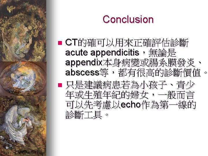結論 n 整個abdomen和pelvis CT scan 都是必須的。因為可能因upper abd pain而間接影響到RLQ pain。