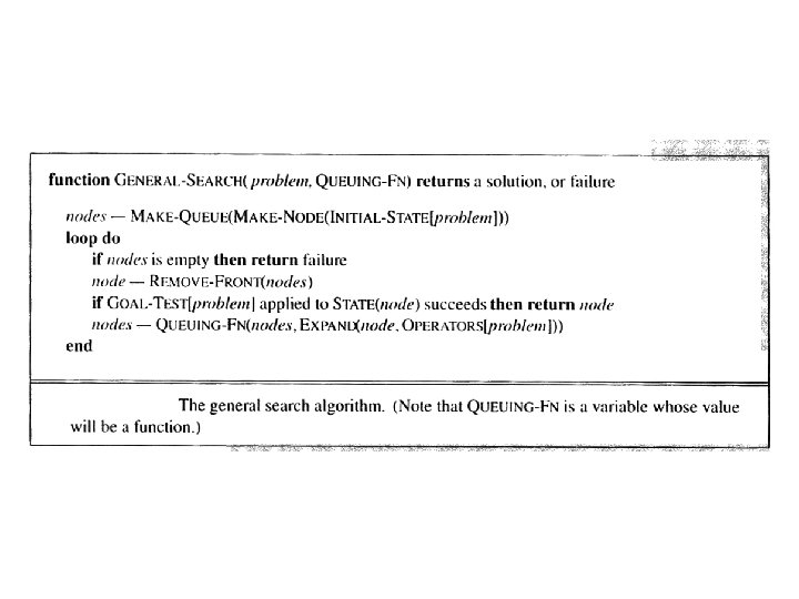 Data type node • • • State Parent-node Operator Depth Path-cost Fringe = frontier = open list (as queue)