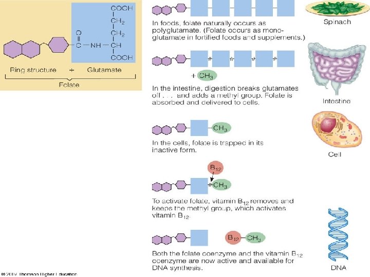 SYMPTOMS • Macrocytic anemia, also called megaloblastic anemia – large cell type • Smooth, red tongue • Mental confusion, weakness, fatigue, irritability and headaches – Most vulnerable of all the vitamins to interactions with medications • Anticancer drugs • Antacids and aspirin