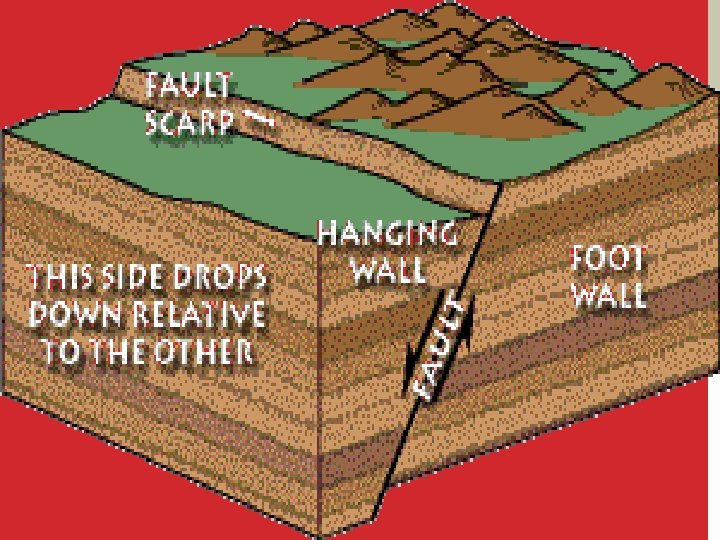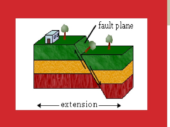 NORMAL FAULTS • Constructive plate boundaries • Tension, crust stretches • Rocks fracture along fault line • Downward movement of land
