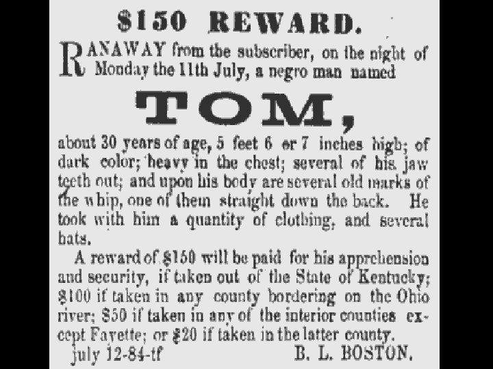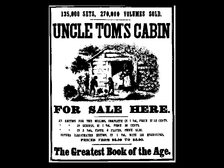 “On the shores of our free states are emerging the poor, shattered, broken remnants of families, --men and women, escaped, by miraculous providences, from the surges of slavery, --feeble in knowledge, and, in many cases, infirm in moral constitution, from a system which confounds and confuses every principle of Christianity and morality. ” …Uncle Tom’s Cabin