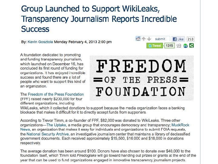 “A cantankerous press, an obstinate press, a ubiquitous press must be suffered by those in authority in order to preserve the even greater values of freedom of expression and the right of the people to know. ” —Judge Murray Gurfein, June 17, 1971, Pentagon Papers case Our website: https: //pressfreedomfoundation. org