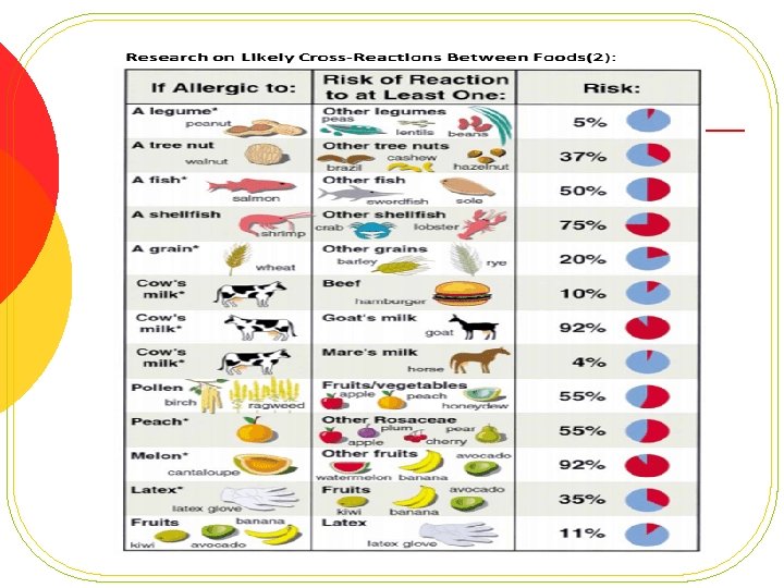Symptoms l Digestive system l l l l Swelling, itching Tightness Hoarseness Nausea Cramping Pain Vomiting Diarrhea l Body systems (skin, lungs, etc) l l l Hives, skin swelling Anaphylaxis – BP falls, wheezing, breathing problems, nausea, rapid pulse, flushing, faintness, passing out Can lead to death
