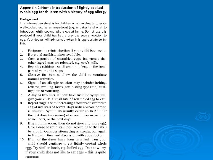 If allergy persists into older childhood? Ø Desensitisation (immunotherapy) is an effective treatment in Ig. E mediated allergy to insect venoms and inhalant allergens Ø Can it be used in Ig. E-mediated food allergy?