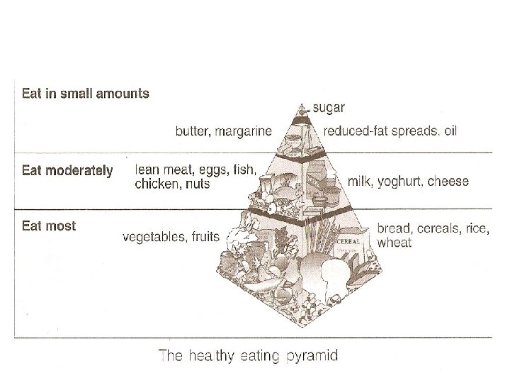 III. FIBRE (ROUGHAGE) • Fibre is present in all plant food like grains, fruits and vegetable. • gives bulk to the food and helps it to move through the intestine. • helps to prevent CONSTIPATION.