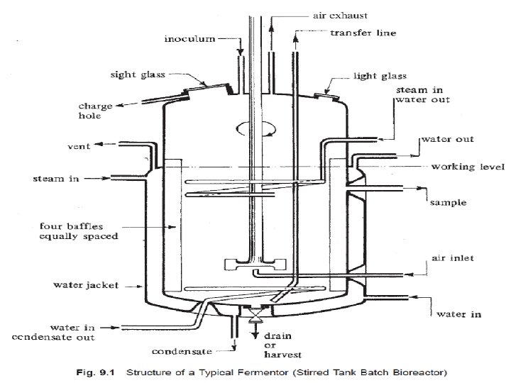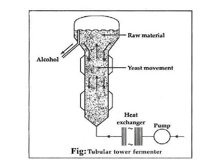 3. 3 The tower fermentor • The tubular (tower) fermentor developed in the UK has been used on a commercial scale for the production of beer, vinegar, and citric acid. • The fermentor is two feet in diameter, about 20 feet tall in the tubular section with an expansion chamber of about four feet in diameter and six feet high. • It has a working volume of 3, 000 liters and aeration is achieved by a stainless steel perforated plate covering the cross section of the tower and holding up the liquid. The charging wort is fed at the bottom. • The unit can produce up to 1 million gallons (450, 000 liters) of 5% acetic acid per annum. • The system can be batch, semi or fully-continuous.