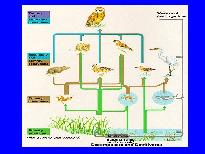 • Food Webs • A Food Webs consists of many overlapping food chains in an ecosystem. • It better represents the transfer of energy than a food chain.