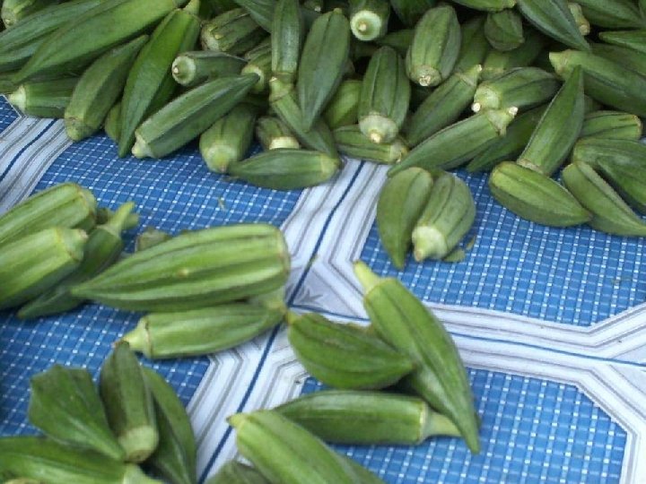 Preparing the okra for the soup Here are the vegetables, the chopped red pepper and the fish ready to be made into soup.